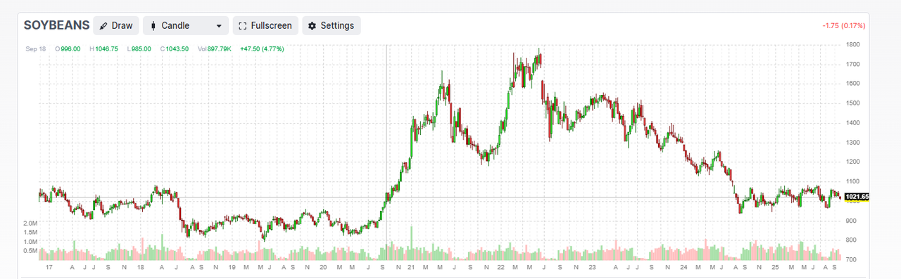 报导指,中国大豆进口量在5月、6月、7月和8月创下历史新高,导致库存增加,部分原因是买家为规避第四季度可能出现的供应中断而采取的对冲措施。